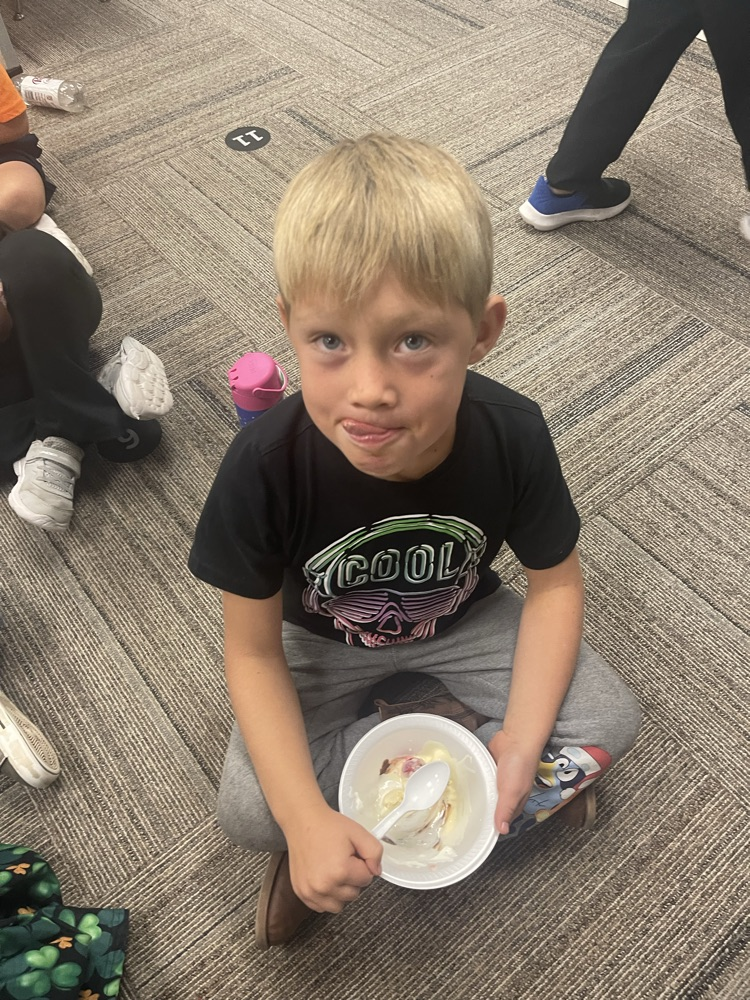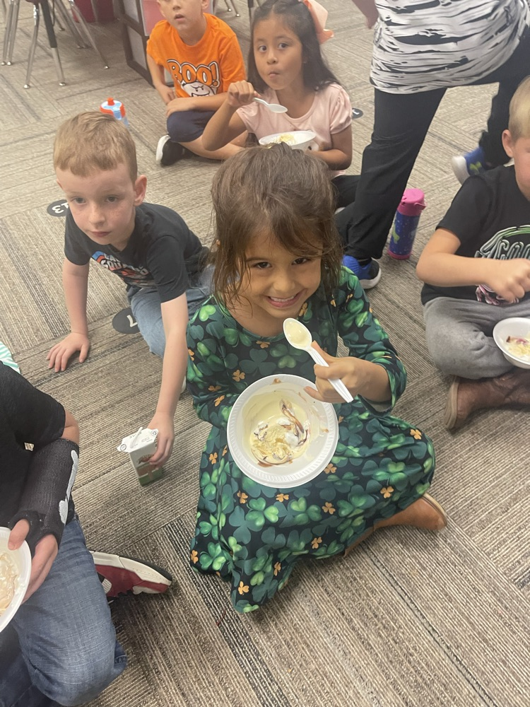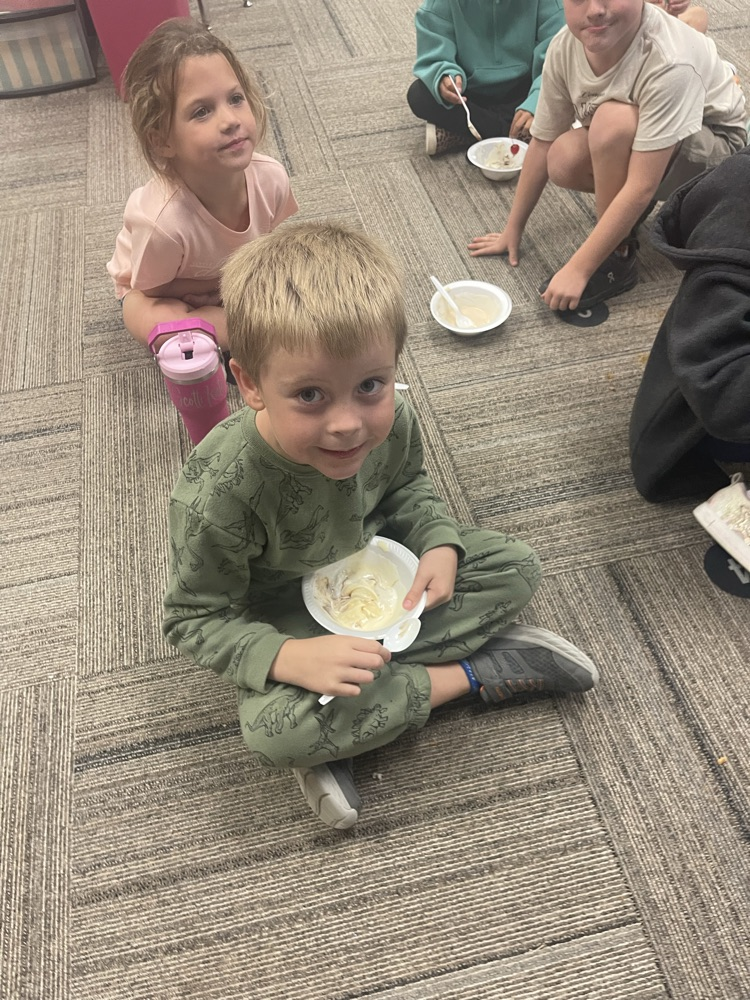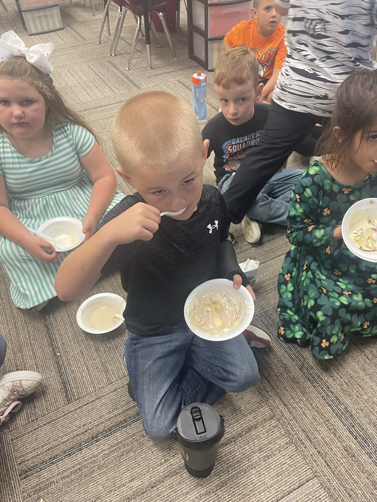 Students from Mrs. Coons' Class enjoy a pizza and ice cream party from ETAPP.